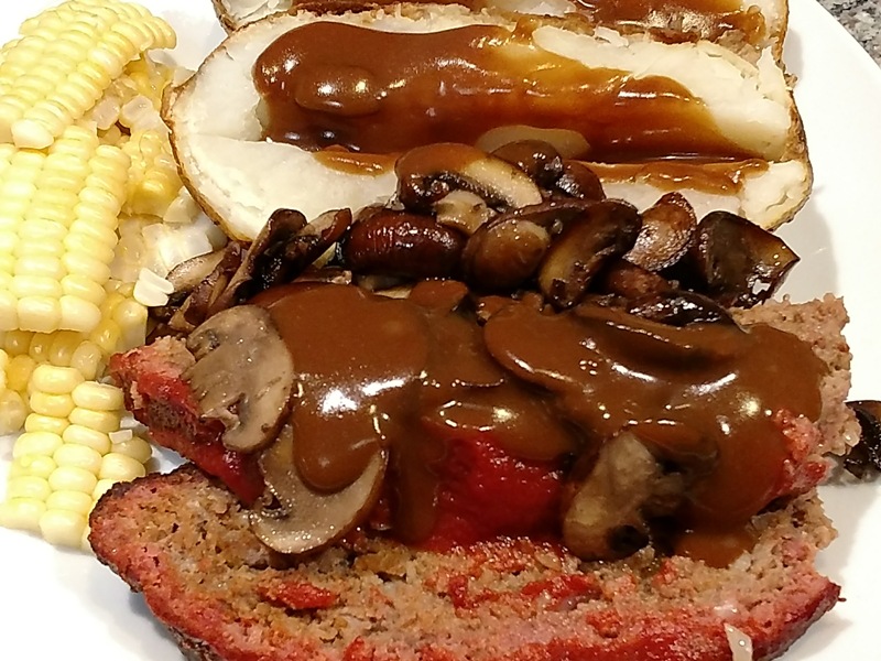 An oven cooked meatloaf is OK but a smoked meatloaf topped with tomato sauce and served with corn on the cob, an SRG baked potato, sautéed mushrooms and smothered in brown gravy is divine. I'm sure you'll agree once you try my recipe.